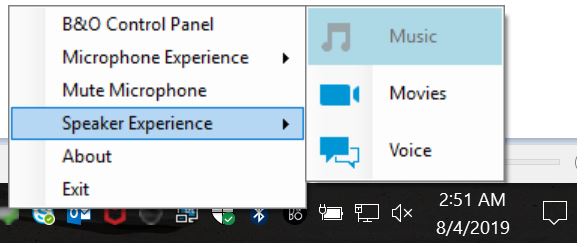 - If yes try this method and check, Right-click on the B&O Icon and change the speaker experience.