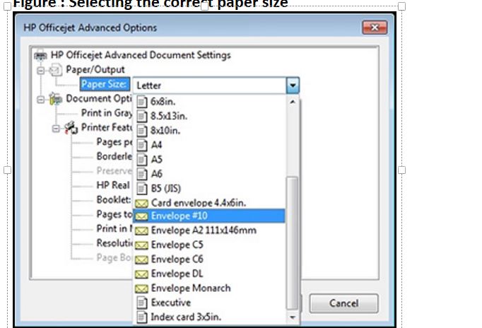 1. Select the paper size that matches the size and type of paper loaded in the printer tray, and then click OK. If there are no matching paper sizes, select the size from the list that is closest to the size of the paper loaded in the tray.