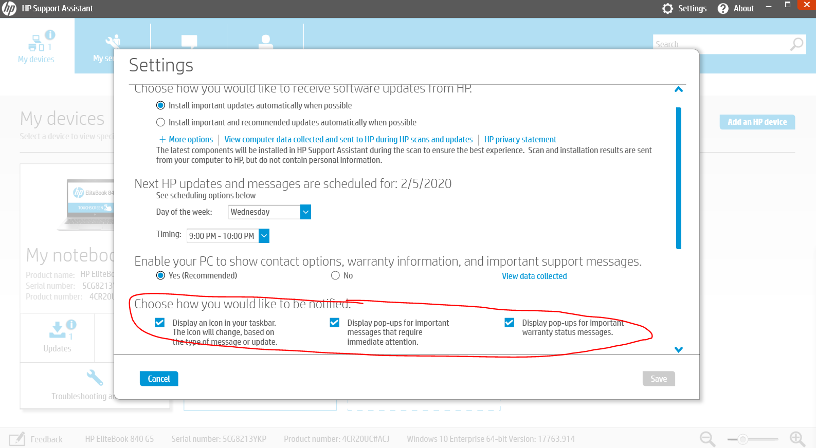 Open the HP support assistance and click on the settings tab and you can disable the notification. As shown below.