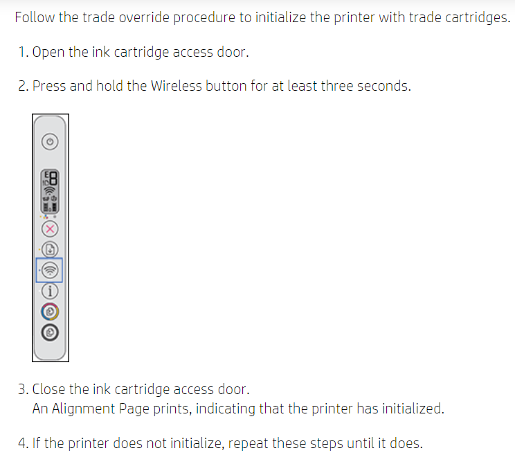 To bypass the message on the printer the only option left is to perform an OOBE reset and re-initialize the printer.