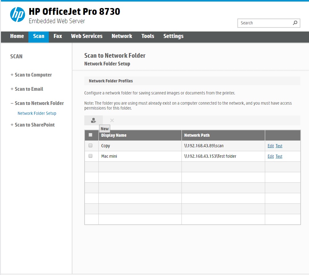 we have a very strange problem with our HP Color Laserjet MFP M277dw printer, when setting configuration for the "Scan to Folder" functionality.