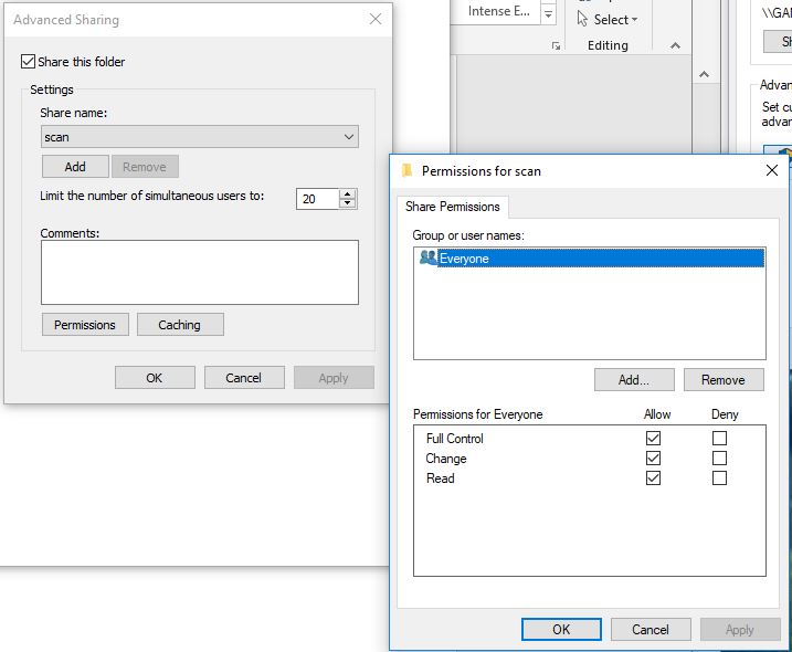 - At the bottom of advanced sharing, click on permissions and give full access/full control